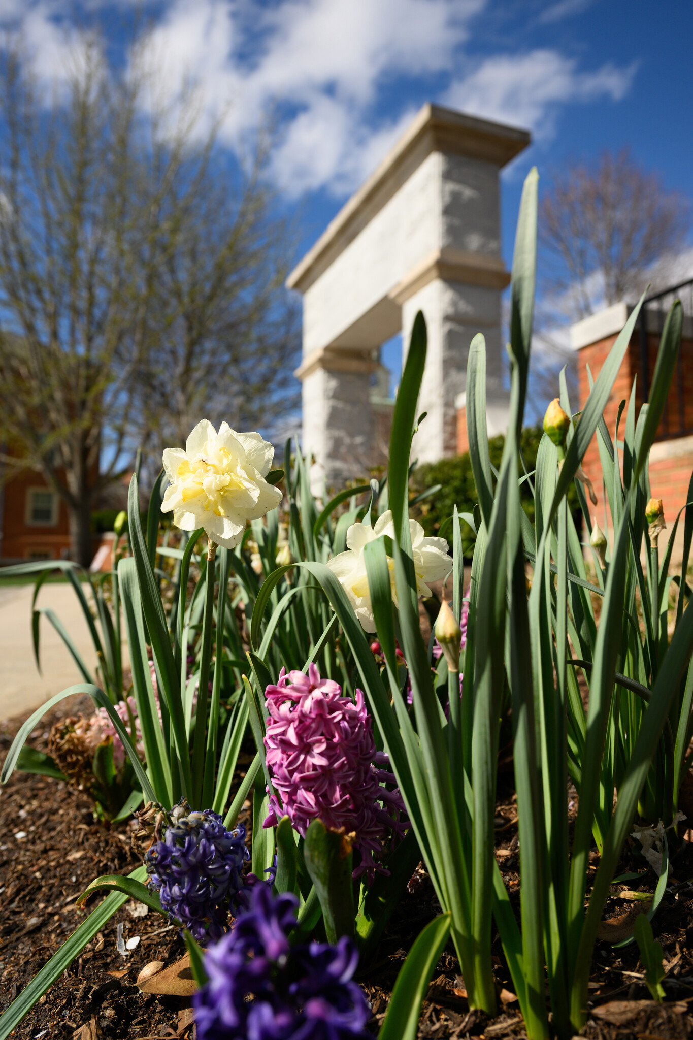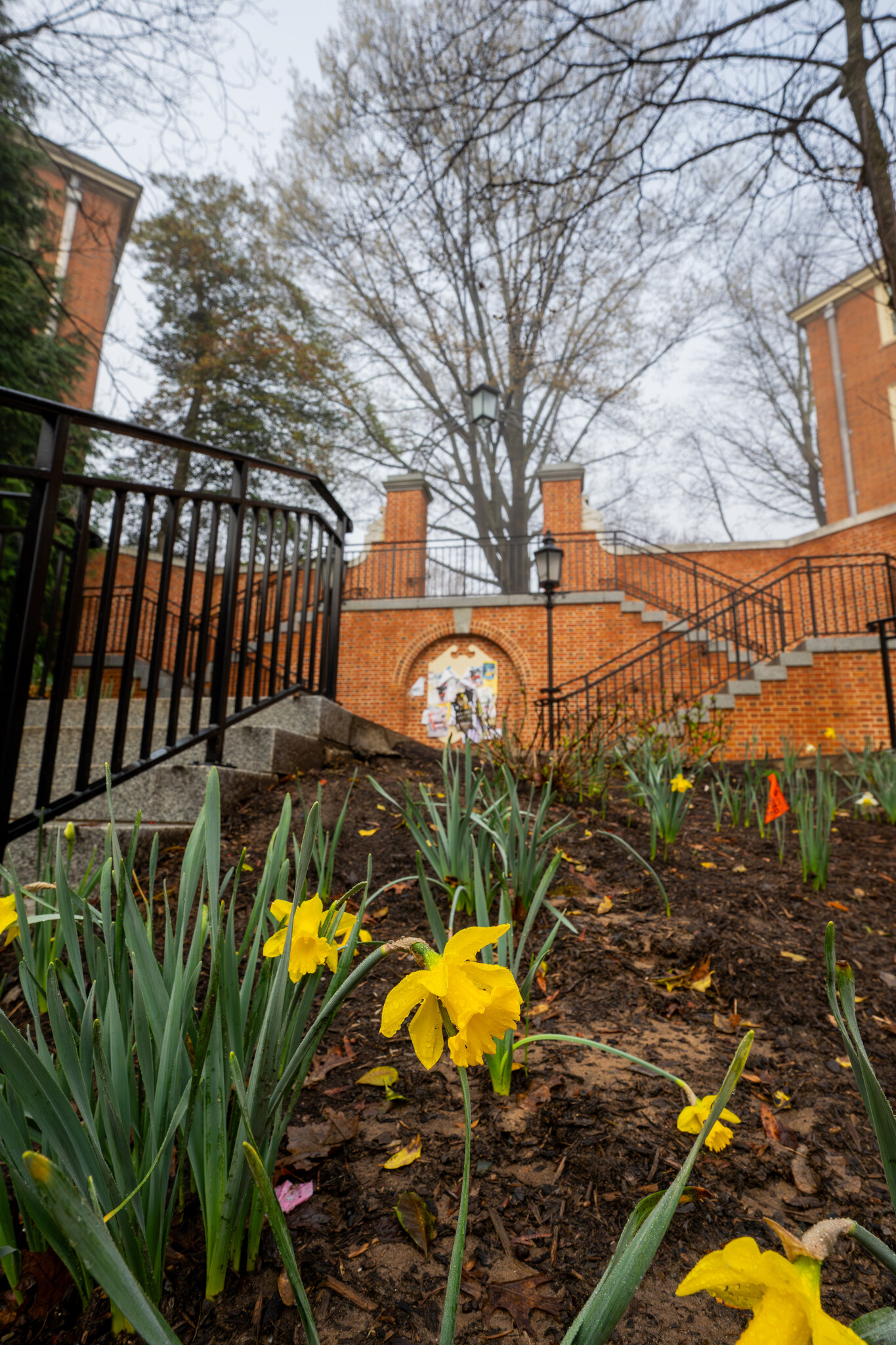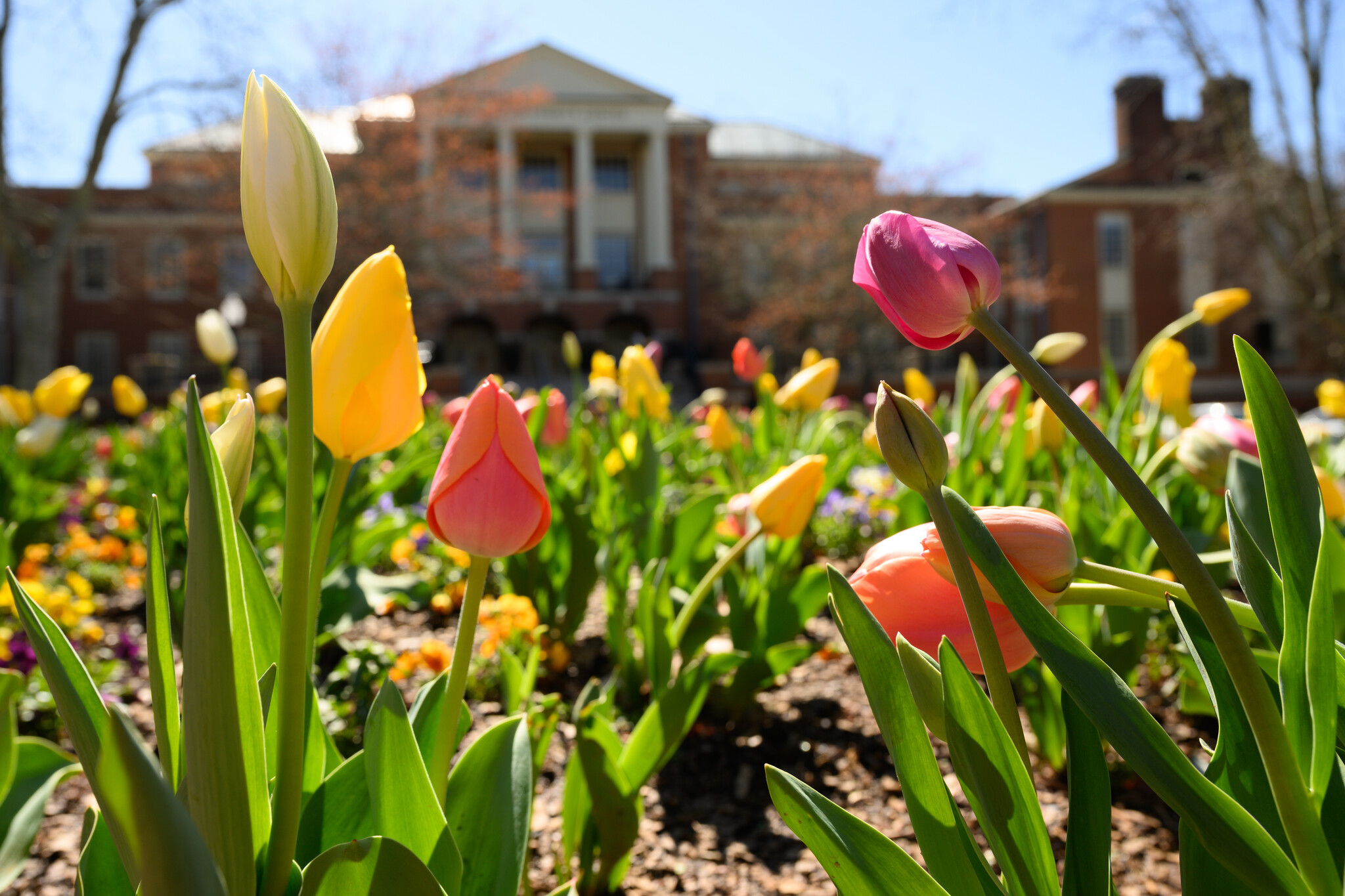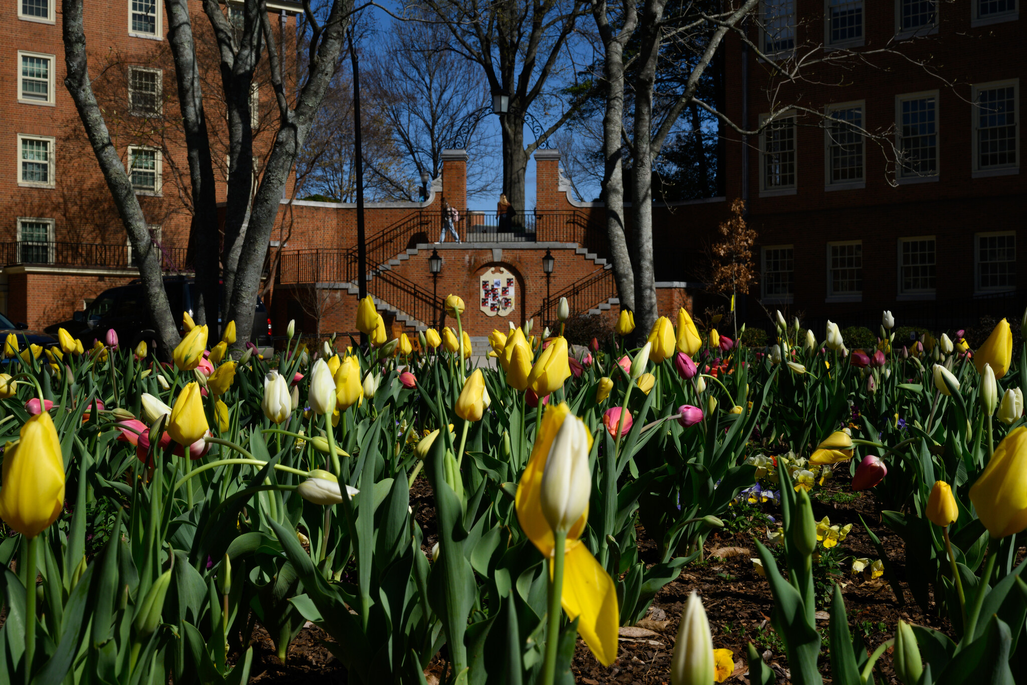 When I drive onto campus it is most often from the Reynolda Road entrance. There are two big flowerbeds, one on either side of the gatehouse, and right now they are filled with gorgeous tulips. I have yet to be the only person coming on to campus, so I haven’t been able to stop traffic to take a pic. So I figured the next best thing would be to show you what our students are seeing all over campus right now.