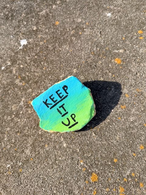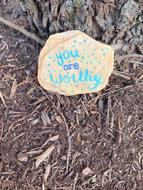 So as I walked across the south part of campus, I started taking a closer look at these Happy Rocks. They all have little messages of affirmation on them and are painted in lovely eye-catching colors. Here is a sampling: