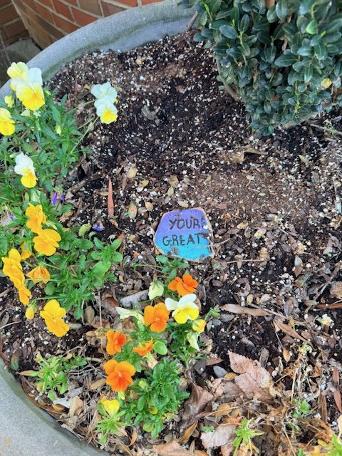 I am assuming they are on other parts of campus? (Student readers, if you are seeing ones worth sharing, hit reply on this Daily Deac and send me pics!) And I’ve no idea which individual or group is making these Happy Rocks – but whoever you are, ROCK ON (pun intended!) My late mother would offer you her highest compliment: a two-tiered halo, which she reserved for people doing angelic good works.